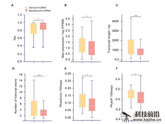 图2 Derived lncRNAs的序列、表达与演化特征