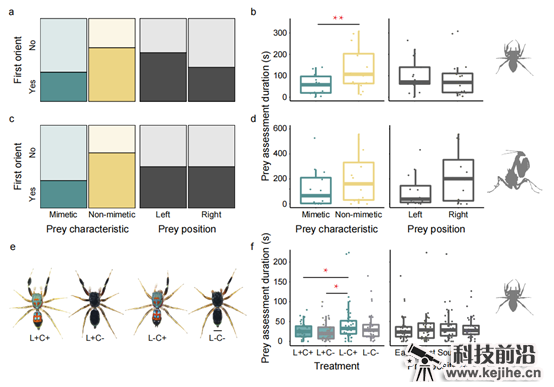 图5. 不同物种及经过处理的科氏翠蛛的反捕食测试