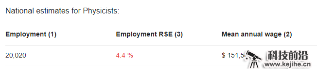 根据美国劳工局的统计,如果你选择成为一名物理学家,那么就业率会比较低,仅为4.4%,年薪中位数高达$151,580,该领域就业增长预计为 7% 。